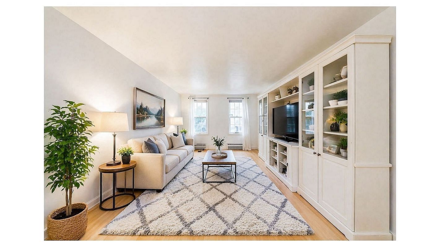 Welcome to Unit 1G at 6665 Colonial Road, a spacious 2-bedroom, 1-bathroom coop offering 1,000 sq. ft. of comfortable living space in the heart of Bay Ridge, directly across from the picturesque Owl's Head Park. This inviting home features a large living area with beautiful hardwood floors, perfect for relaxation or entertaining.