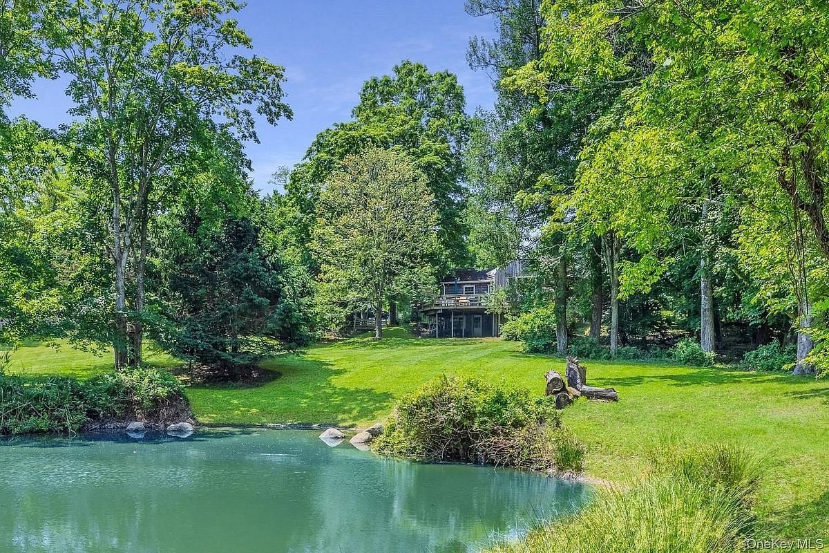 Set on the gentle slope of a spring-fed pond, this Shelter Island residence, similar in ways to a duplex, reveals itself not all at once, but as you explore the home. One enters by way of a circular drive that curves around an old maple and up a short path to the front entrance. The home design understands the value of sunlight, privacy, and practicality. Inside, the main floor offers a living room where light from the west falls generously across books, armchairs, and a raised stone fireplace. A modest kitchen, thoughtfully arranged, adjoins a small breakfast area, a fine place for morning coffee and a quiet view. Down the hall, the primary bedroom includes its own bath, set apart in a way that grants quiet. At the rear of the house, a library lined with built-ins opens to a deck overlooking the water, where the pond's surface shifts with wind and the passage of sunlight. Below, the lower level is wholly its own space - 832 sf of additional finished living space-not merely an extension of the upstairs, but a dwelling with purpose. A living room, dining room, second fireplace, full kitchen (one of two legally established in the house), bedroom, and bath occupy this floor, with sliding doors that open to a hidden stretch of land and a view that belongs almost entirely to ducks, frogs, turtles, and the birds that stop in from nearby Sachem's Woods. The pond has its own rhythm; Spring-fed and self-sustaining, it hums with life. And while the property is not far from the ferry, from shops, or from the beach, it feels content to exist slightly apart, offering its new owner not just a house, but a setting in which to think, observe, and live quietly among living things.