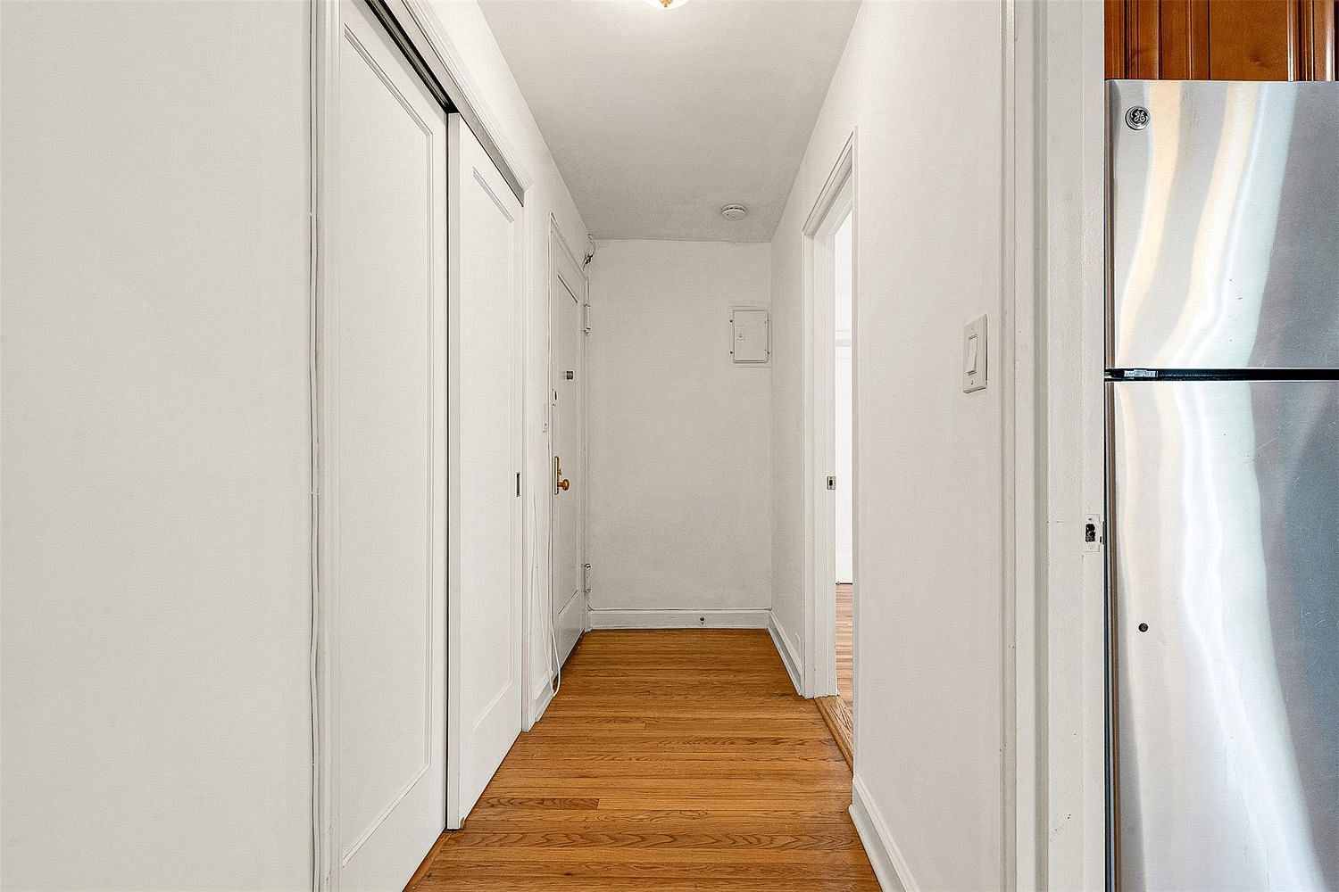Convenient second floor unit with desirable sun-drenched southeastern exposure. Great floor plan with large entry closets, a large living room with a separate dining area. Updated windowed kitchen equipped with brand new stainless steel appliances, cherry cabinets and granite countertops. Kitchen can be opened up into the living room. A wall lined with custom closets will lead you to the renovated windowed full bath with clean lines, classic subway tiles, and a reglazed tub. The expansive bedrooms are situated on opposite wings and do not share a wall for added privacy. Oak hardwood floors and the unit has been newly painted throughout.