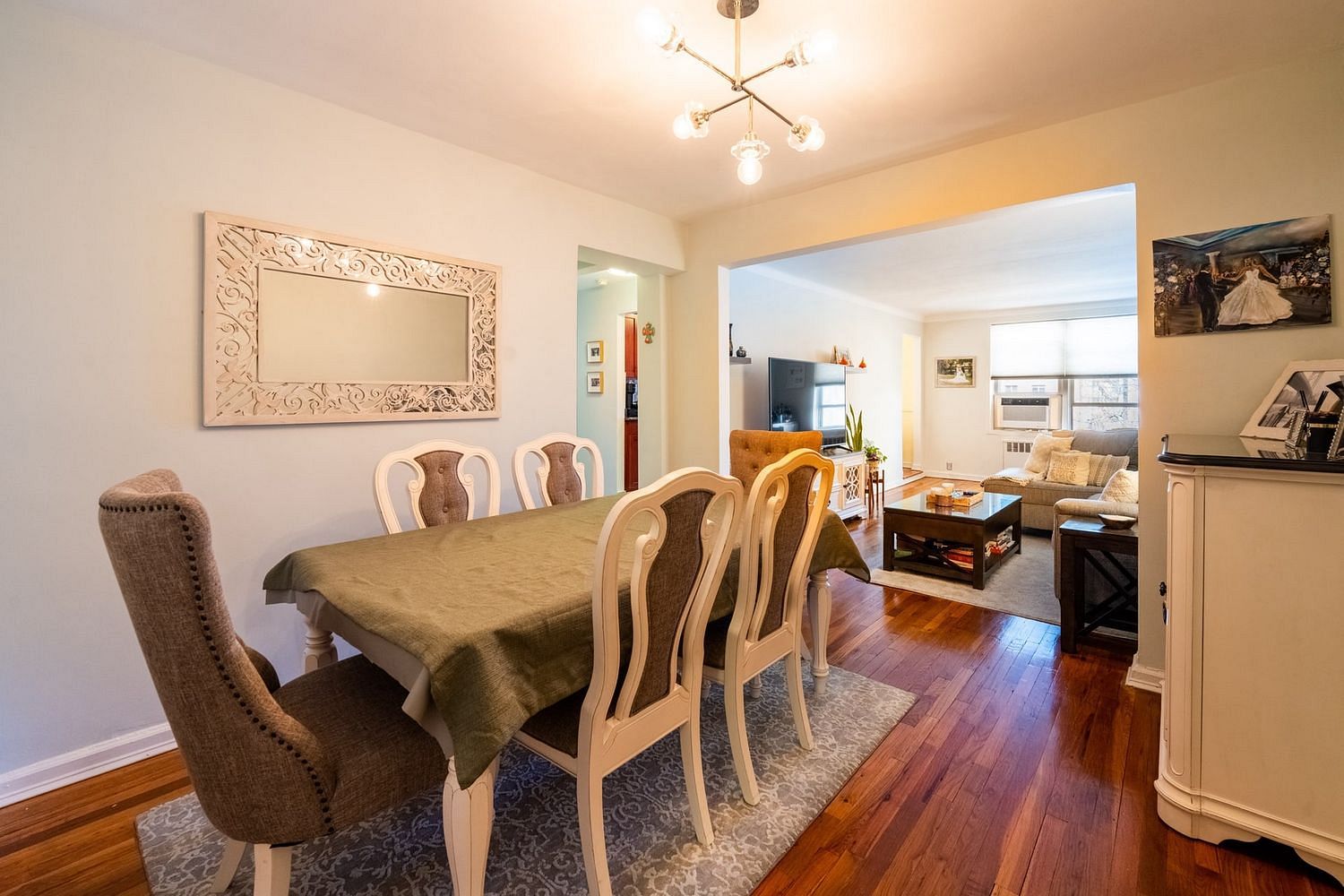 Welcome to this sun-drenched Junior 4 apartment where modern upgrades meet classic comfort. This corner unit is filled with natural light from large windows, highlighting the elegant hardwood floors throughout. The spacious layout includes a separate dining area and living roomideal for both entertaining and everyday living. The fully renovated kitchen features full-size stainless steel appliances, sleek cabinetry, and ample counter space. A versatile bonus room offers the flexibility to serve as a home office, second bedroom, or an eat-in kitchen to suit your lifestyle. The generously sized bedroom easily fits a king or queen bed, with room for nightstands, dressers, or a reading nook. A large double-door closet offers excellent storage, complementing the additional closets throughout the apartment and keeping your space organized and clutter-free. The building provides exceptional convenience with a full-time doorman, elevator, virtual doorman system, and on-site laundry, and garage parking. These amenities ensure a comfortable, seamless living experience. Dont miss this opportunity to own a bright, thoughtfully updated home that blends space, style, and functionality.