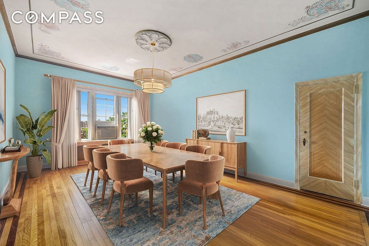 As you pass through the welcoming entry foyer, you will immediately feel the expansiveness of this home. The double doors to your left open into the grand formal dining room, while the elegant living room featuring a woodburning fireplace is to the right. The oversized windows in both rooms provide wonderful natural light from morning till late afternoon. The living room has open views facing 108th Street, while the dining room overlooks tree-filled Yellowstone Park. You wont find this kind of living and entertainment space in most houses in Forest Hills! The residence has an abundance of storage space, with nine large closets, as well as a dedicated storage bin in the basement.