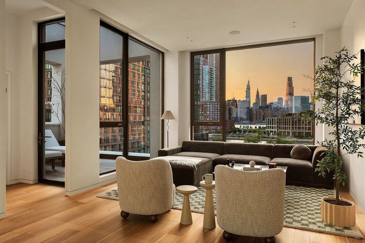 Above it all, a private full-floor rooftop oasis transforms daily living into something cinematic. Brazilian hardwood decking and fencing embrace a built-in grill, outdoor shower, and multiple seating areas. Here, 360-degree skyline views stretch across Manhattan, Long Island City, and the East River. This rooftop isn't just for lounging-it is a place to make memories, celebrate milestones, and gather your favorite people for the moments that matter most.