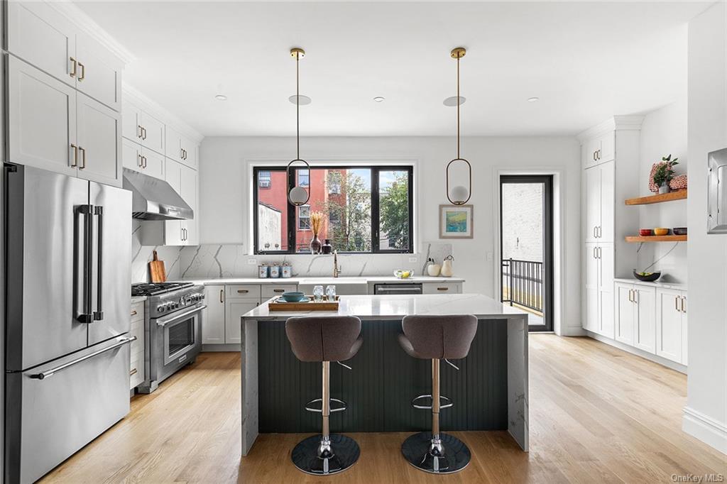 Welcome to 684 Monroe Street, Brooklyn - Where Elegance Meets Comfort Nestled in the heart of the vibrant Bed-Stuy neighborhood, on an extremely rare 25-foot wide lot, this stunning 3-story extra-wide townhouse at 684 Monroe Street is the epitome of Brooklyn luxury living. From the moment you step through the tiled vestibule adorned with the address "684," you'll be captivated by the timeless charm and modern amenities that define this elegant residence. A Spacious Oasis Boasting an unheard-of 22-foot width and lofty ceilings, this home offers an abundance of space and natural light. With 4 bedrooms, 3 full bathrooms, and 2 half bathrooms, it's designed to accommodate your every need. Parlor Level Perfection The parlor level welcomes you with an open floor plan that seamlessly integrates the living room, dining room, and chef's kitchen. White oak hardwood floors grace the interior, while a Nest thermostat and security system ensure comfort and peace of mind. Built-in Bluetooth speakers set the mood, and the kitchen is a chef's dream, featuring custom white cabinetry with brushed brass hardware, a Calacatta marble island with sage green accents, a wine fridge, a farmhouse sink, and a suite of stainless steel appliances, including a gas range oven and a convenient pot filler. Large windows overlook your own private oasis a beautifully landscaped backyard. Step outside onto the deck off the kitchen to enjoy the outdoors from the comfort of your home. Your Serene Retreat Upstairs, the spacious primary en-suite awaits, with room for a king-size bed, a sitting area, and ample closet space. The skylit primary bathroom boasts a double vanity and spa-like shower, surrounded by beautiful white tilework. Two additional bedrooms down the hall share a well-appointed bathroom, and a closet houses a washer and dryer for your convenience. Entertainment Haven The ground level is perfect for hosting guests, with a bonus lounge/living room complete with a wet bar and access to the spacious private backyard an entertainer's dream. Another large bedroom and a full bathroom complete this level, ensuring privacy and comfort for all. Endless Possibilities The finished cellar offers a large, multipurpose room with a half bathroom, providing endless possibilities for your lifestyle needs. The Perfect Location Conveniently located near the A, C, 2, 3, and 4 trains, you'll have easy access to Manhattan and all of Brooklyn's attractions. Passionfruit Coffee House just around the corner and Marians Brooklyn nearby offer excellent dining and cocktails, while the neighborhood is brimming with eateries and shopping. In Summary 684 Monroe Street is more than a home; it's a lifestyle. With its blend of classic charm and modern amenities, this townhouse offers an unparalleled living experience in one of Brooklyn's most exciting neighborhoods. Don't miss the opportunity to make this exquisite property your own schedule your viewing today! *Total square footage includes finished cellar/multipurpose room.