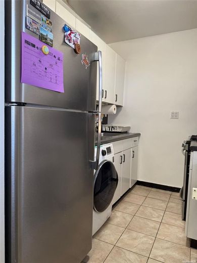 Beautiful Garden Apartment, Conveniently located in Kew Gardens Hills. Easy access to highway and public transportation. Well maintained one large bedroom, used as 2 bedroom right now, located at second floor, offering washer and hardwood floor, Common charges include: snow removal, ground care, trash removal, HEAT and HOT WATER. This unit has a coveted garage (with garage opener) for additional $40,000, Good for first-time homebuyers and investors.