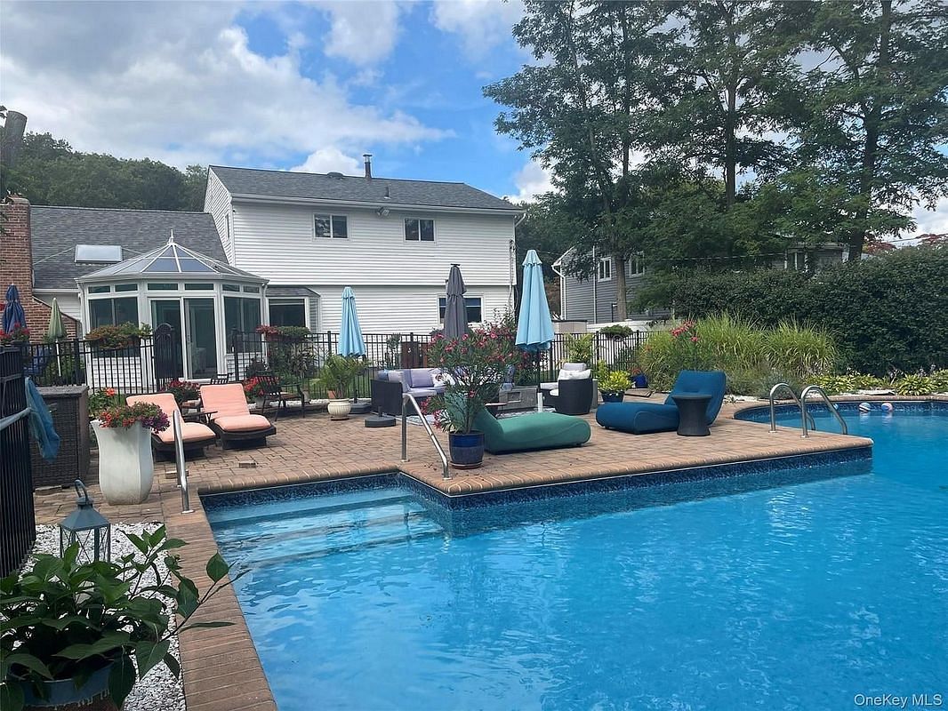 Welcome to this stunning 4- Bedroom, 2.5- Bath Colonial perfectly situated on a .35 acre in the Half Hollow Hills School District. The main level offers an inviting Entry Hall with a Powder Room, a formal Living Room and Den with a skylight and a Gas Fireplace. The Gourmet Kitchen features Stainless Steel Appliances, Gas cooking and a beautiful feature window overlooking the backyard. The Kitchen flows seamlessly into the Dining Room and Den making it ideal for entertaining. The upper level features the Primary Bedroom En-suite with Bath & Jacuzzi tub, three additional Bedrooms with Hardwood Floors and Full Bath. A beautiful Sunroom off the Den offers the perfect place to relax and unwind, featuring walls of windows that fill the space with natural light and overlooks the resort style backyard with an In-ground Heated Saltwater Pool, Stone Patio and Gas Fire Pit. Additional highlights include: 2- Car Garage, In-ground Sprinkler System, Basement with utilities, washer/ dryer and so much more!