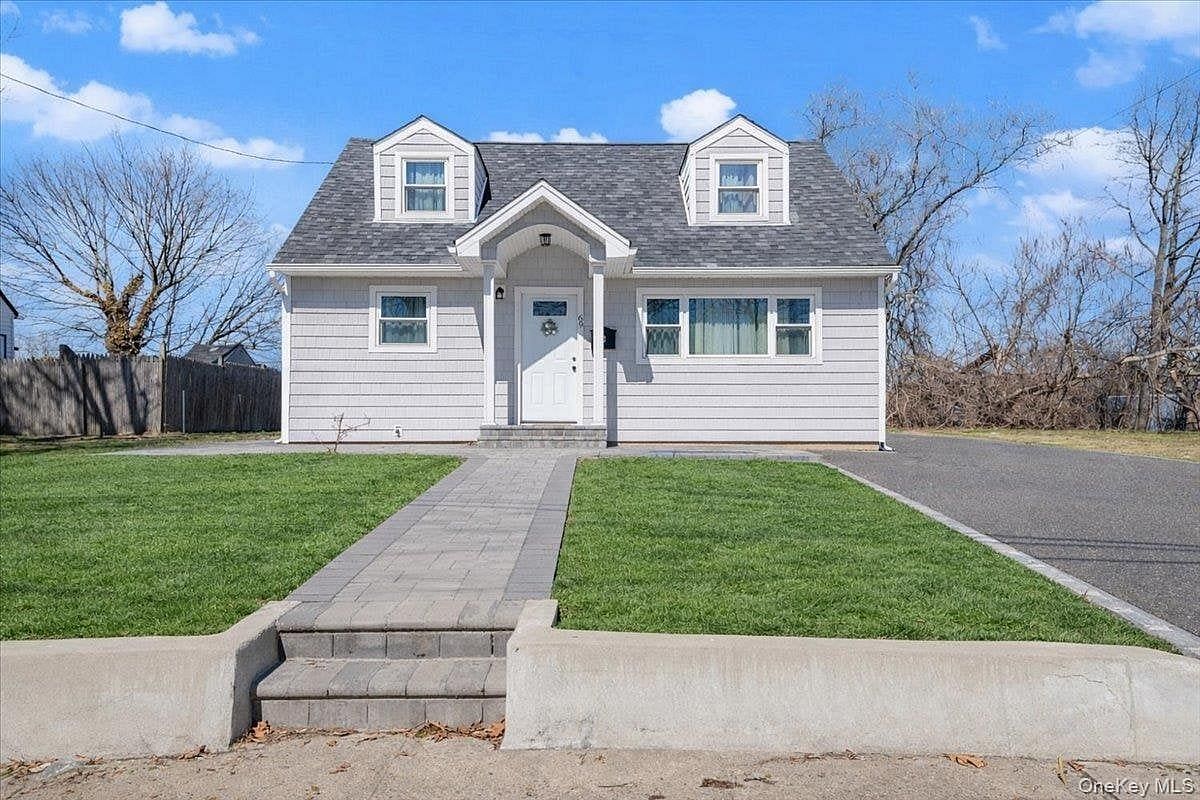 This meticulously remodeled cape offers a bright, inviting layout with generous updates and practical spaces. The two-level layout has 2 bedrooms and a full bath on each floor. The eat-in kitchen has a side entry door, ideal for easy access to the backyard. This well-appointed home offers an efficient hall closet that includes a laundry hook-up. This home features a refreshed front with new pavers that create a welcoming entrance and practical, low-maintenance hardscaping. A stately portico with supporting columns provides covered curb appeal and the expansive driveway offers ample off-street parking. Conveniently located close to the LIRR, shopping outlets, and schools Schedule a showing to experience its welcoming layout.