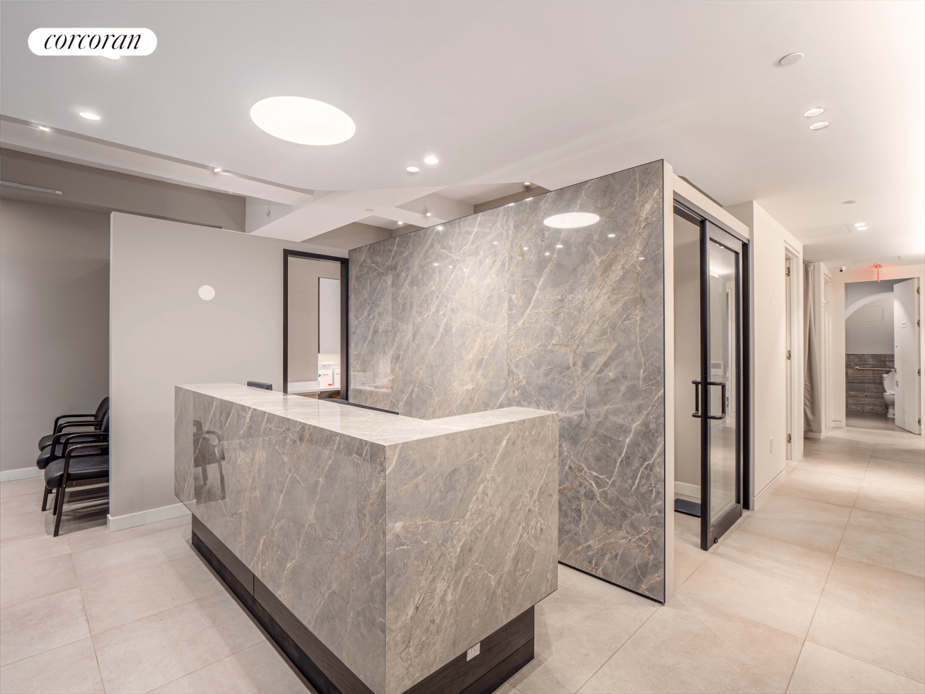 This high-end surgical/gastroenterologist office features soundproof exam rooms and offices, dual-zone central air-conditioning and twelve windows. This space is in move-in-ready condition and adaptable to any medical specialty.
