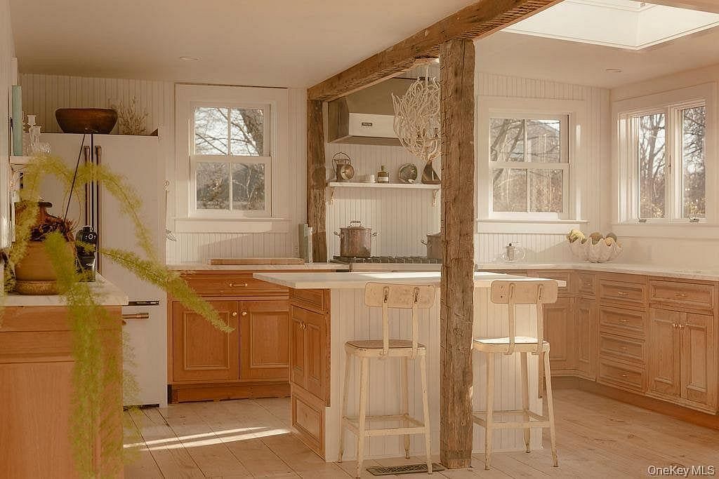 Welcome to the Lavender House, a stunningly restored farmhouse ready for it's next chapter. This 3-bedroom, 4.5-bath home blends historic 1800's charm with a meticulous modern restoration, creating a warm and elegant North Fork retreat. Each bedroom features their own en-suite bathroom, thoughtfully designed for entertaining your weekend guests. A sun-filled kitchen with oak cabinetry and marble countertops overlooks the expansive 1.14-acre property, offering beautiful views and abundant natural light throughout the day. Professionally designed living spaces balance timeless character with refined updates- this home is both inviting and functional. The property offers a rare opportunity to create your own North Fork compound just two miles east of vibrant Greenport Village. Bonus feature is a charming two-story artist's barn- awaiting you to reimagine it as a guest house, pool house, or creative studio. The expansive backyard has room for a pool, patio and endless potential. This home begs for you to bring your design ideas and put on finishing touches, home is being sold as-is. East Marion is one of the North Fork's most coveted beachside hamlets, perfectly situated near local beaches, golf, farmstands, vineyards, and six miles from the Cross Sound Ferry to New England.