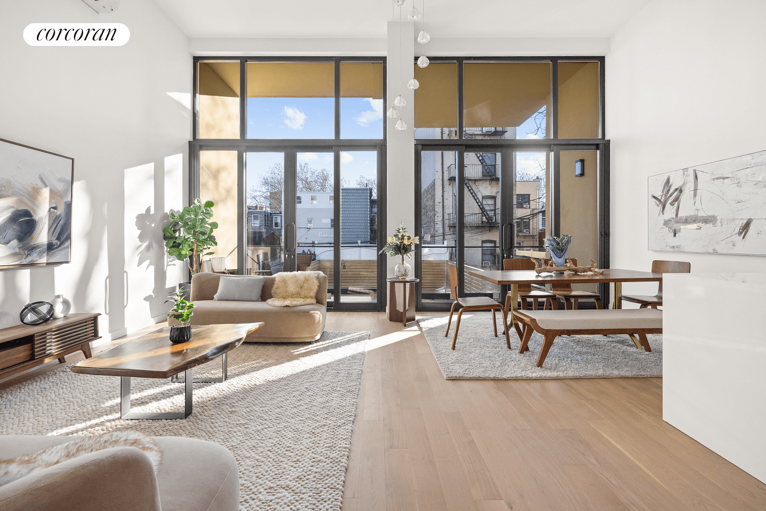 Unit 2 is a stunning two-bedroom, two-bathroom home spanning 1,159 square feet of carefully curated living space. At the rear of the residence, you'll find a breathtaking living and dining area with soaring 14.5-foot ceilings and floor-to-ceiling glass that floods the space with incredible morning light. Step out onto your private 154-square-foot terrace, perfect for relaxing or entertaining while basking in the serene surroundings.