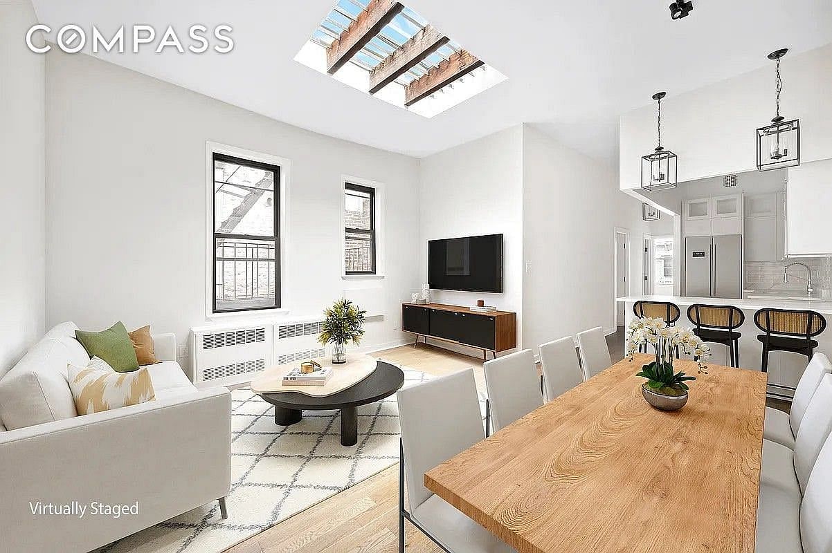 Fresh off a full renovation, entering this apartment you will fall in love immediately with the long red brick wall and beaming natural light through the skylight along with three wooden feature beams!