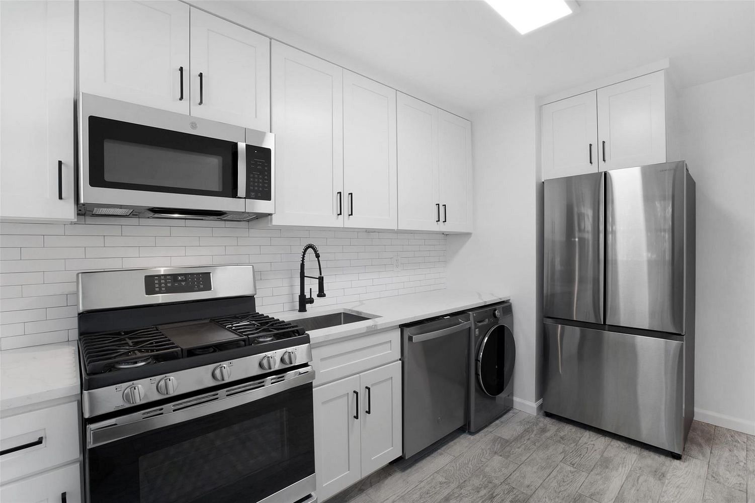 Bright Sunny Corner Unit facing Alley Pond Park! The entire apartment is renovated with high-end finishes and detail. The eat-in kitchen has gorgeous white shaker cabinets, stainless steel appliances, including washer/dryer combo, and quartz counters. The bathroom has modern tile and fixtures. The electric has been upgraded, including recessed lighting, new electric panel, outlets and decora switches throughout. The hardwood floors are finished and rug ready. Windsor Oaks is a pet friendly co-op: dogs and cats are welcome.