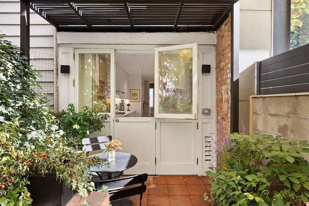 75 1/ Bedofrd, built in the 19th century, is truly a gem of a townhouse. It boasts 3 Bedrooms, 2 Bathrooms and a finished lower level retreat that easily functions as a fourth Bedroom for guests with its own Calacatta marble Bathroom. The home, with 150 sq ft of outdoor space, has a Private Garden oasis off of the Kitchen that has been beautifully landscaped and is ideal for dinner parties or just relaxing and connecting with nature. There is wonderful light throughout the house from the large skylight on the upper level, oversized windows in the front and floor-to-ceiling French doors on the first two levels. All Bedrooms, as well as the Primary Bathroom, have working wood-burning fireplaces framed in travertine. What a dream! Leave the Dutch door on the ground floor garden level open, enjoy a fresh breeze, and cook in your well-appointed Kitchen with custom millwork, Italian marble countertops and backsplash, built-in Miele coffee maker and vented oven. On the second level the airy Primary Suite features efficient closet space and a spa-like Bathroom, with a balcony overlooking the serene Garden. The Bathroom is exquisitely designed with a claw-foot deep-soaking tub against a gorgeous mosaic tile backdrop, separate shower, two Italian marble sinks, Lefroy Brooks fixtures and abundant storage space. The upper level soars to 12 feet leading to the magnificent skylight and has two additional Bedrooms, one with a balcony overlooking treetops. You will wake up every morning feeling transported to Europe! Other features of this magical home include oak flooring throughout, central air conditioning and a vented washer/dryer.