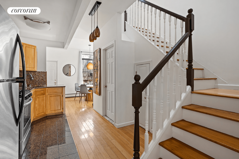 Charming Federal Brick Bed Stuy Two Family Home located off Tompkins Ave and right up the block from Von King Park. The upper duplex has 2 bedrooms / 1.5 baths with the lower level featuring a bright and cozy living room, dining room (which was originally a 3rd bedroom), open kitchen, 1/2 bath and a back deck that overlooks the tranquil backyard space. The two bedrooms with great closet space and a full bathroom are on the top level. The garden level has an income generating 1 bed / 1 bath unit with access to the backyard. There is separate access to the cellar which is great for storage and has a washer/dryer. The location is amazing with Von King Park right up the block and all amenities on Tompkins Ave nearby - proximity to the G Train at Bedford/Nostrand, the A,C & J trains are nearby and the B38 stops right on the block.