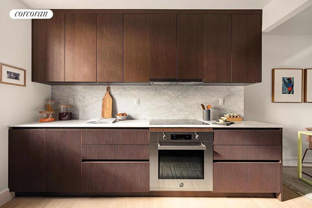 755 Washington is the newest exciting addition to the very limited condo inventory in historic Prospect Heights, and one of the only options with an elevator and parking spaces for sale. Situated within a stone's throw of Prospect Park, the Botanic Gardens, the Brooklyn Museum, and the vast array of mouth-watering amenities on Washington and Vanderbilt avenues, it is distinguished by an elegantly conceived ornate brick facade reminiscent of the nearby pre-war buildings. Just ten unique units are available, five 2-bedrooms and five 1-bedrooms, all with private outdoor spaces included, and just four parking spaces for sale for 100K each. Monthlies are low, but owners will still be able to enjoy a gracious common roofdeck accessible via elevator, landscaped to perfection, that also includes a grill, comfy custom furniture, and inspiring panoramic views of the Park and Museum. Each unit also includes a basement storage space in the price, and also enjoys the added benefit of a fitness center and work-from-home lounge in the cellar. Enjoy the intimacy and splendor of a boutique pre-war building with all of the coveted comforts usually only reserved for more generic new development. You will also experience the rare tax benefits of a class 2B building which puts a cap on all future tax increases as well (7 to 10 units cannot exceed 8% per year OR 30% over a 5-year period). Whether you are looking for a one bedroom, or a two, kitchens are windowed, sizable, and stylish in every unit. Striking Cerused oak Italian cabinetry lives in harmony with richly veined honed Bardiglio marble countertops and backsplashes, Newport Brass faucets, and oil-rubbed bronze cabinet pulls. A fully paneled professional Bertazzoni and Bosch appliance package encourages home cooking every day of the week. Generous islands offer ample storage and prep space, including drawers, cabinets and creative open shelving. Both floorplans also offer a dedicated dining area perfect for a spacious dining table that lives separately from the living room. The one-bedroom unit features TWO sizable balconies, one off the bedroom and the other off the living room, with west-facing treetop views. The two-bedroom units face south and east, and every unit features an oversized balcony and/or terrace, perfect for green thumbs, outdoor entertaining, or daily playtime. The second floor 2-bedroom unit features an unrivaled private terrace offering a sizable 464 SF of outdoor space! The upper 2-bed units are also ample with 123 SF, more than enough space for dining and play. The one-bedrooms are equally outfitted, offering 98 square feet of outdoor space, conveniently located off the spacious living space. Bathrooms are luxurious and far superior to the bland neighboring new construction. Enjoy the rich playfulness of Calacatta Violetta in the primary bathroom juxtaposed with handmade Heath ceramics and custom bronze hardware that pairs perfectly with the double walnut vanities. Secondary baths have a timeless appeal and include a taupe hand-made ceramic wall tile juxtaposed with an eye-catching checkerboard floor consisting of Bardiglio and Calacatta marbles. Both bathrooms offer an unmatched and elevated experience that includes the addition of custom sconces, oversized mirrors, deep medicine cabinets, linen-closets, Duravit toilets and sinks, and stunning bronze Dorn Bracht fixtures. Additional unit features include central heating and cooling, stunning wide-plank oak floors, high ceilings, striking blackened steel windows with mullions, solid-core oversized doors, and of course, your very own LG washer and dryer in a spacious utility closet. Additional building features include a Virtual Doorman, package room, bike room, and garbage chute in addition to the basement storage, gym, lounge, and roofdeck. Enjoy the best of all worlds in this one-of-a-kind condo. Neighborhood amenities include an organic supermarket across the street, amazing restaurants and cafes in every direction, the 2/3 Express train two blocks away, and of course, the world-famous Prospect Park, Brooklyn Museum and Botanic Gardens just minutes away. Some photos are of similar staged units to show finishes. Complete terms of the offering are available in an Offering Plan from the sponsor. CD 25-0079.