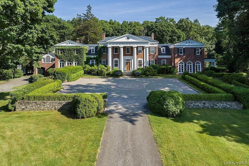 Set on 64 gated acres at one of the highest points in Bedford’s most exclusive estate area, this rare and historic brick Georgian mansion is approached by a half-mile drive lined with mature maples and fruit trees. Perched atop a private hill, the property commands sweeping western views toward the Catskill Mountains and enjoys a serene natural setting bordered in part by preserved parkland — ensuring lasting privacy and unspoiled beauty. Built in 1930 and owned by only three families in its history, the 10,000-square-foot residence exemplifies timeless Georgian architecture. Grandly scaled yet warmly livable, it features wide-board hardwood floors, six marble fireplaces, rich wood paneling, and soaring ceilings that reflect the craftsmanship of a bygone era. The home offers eight bedrooms and eight baths, including a refined primary suite with a marble bath, fireplace, and private balcony overlooking the grounds. Estate amenities include a charming guest house, a heated pool with cabana (fireplace, bar, and changing rooms), a tennis court, whole-property sound system, and full-property generator. Just 15 minutes to Bedford Village and 45 minutes from New York City, this is a once-in-a-generation opportunity to own one of Westchester’s great estates — a property of exceptional scale, provenance, and enduring appeal.