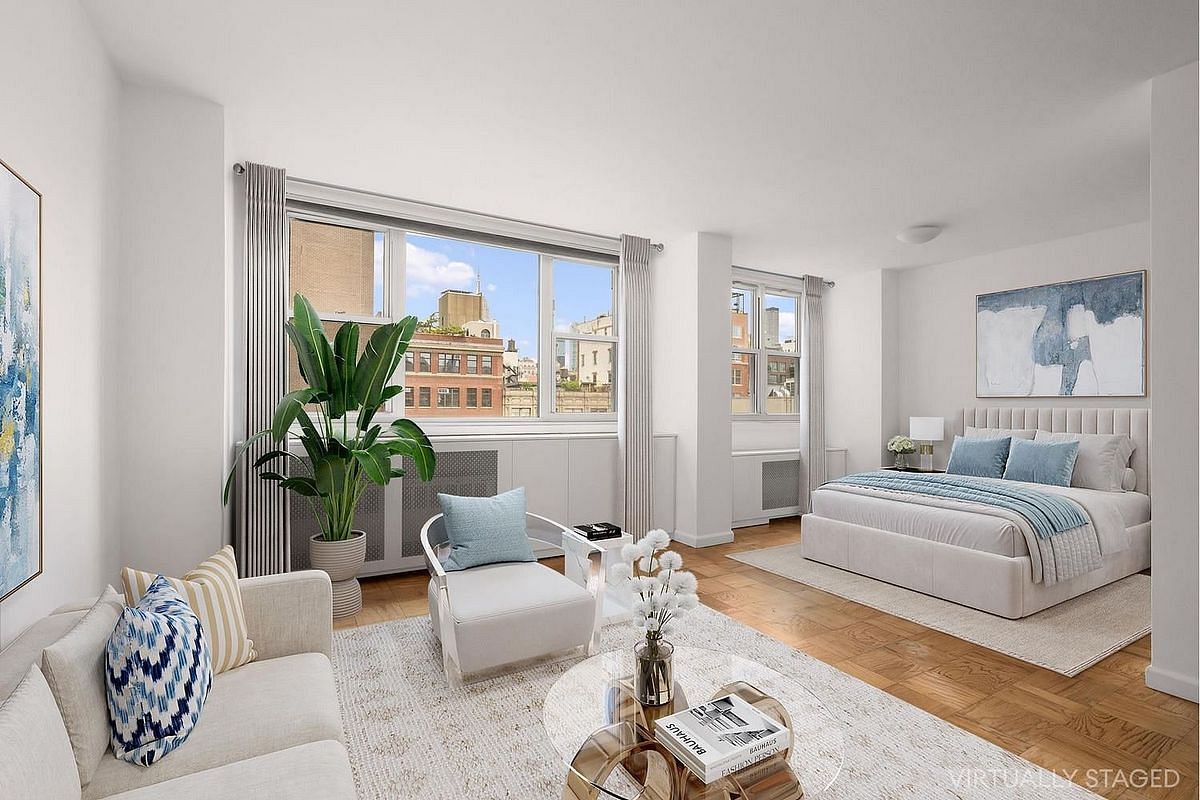 Move right into this spacious alcove studio or convert into a one-bedroom home with open views over Chelsea townhouses to the iconic Empire State Building and Midtown skyline.