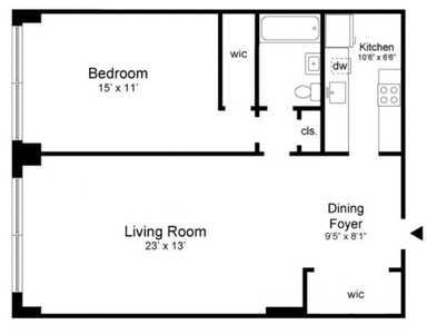 COMPLETEY RENOVATED - Welcome to Apt 2H at 77 W 55th St, an elegantly designed one-bedroom, one-bathroom residence that seamlessly blends modern amenities with classic charm in one of the most sought-after neighborhoods in New York City. This spacious apartment boasts a thoughtfully designed floor plan that maximizes space (approx. 800 sf) and light, creating an inviting entertainment space and comfortable living environment. Bright and airy with wide plain hardwood floors and plenty of closet space throughout.