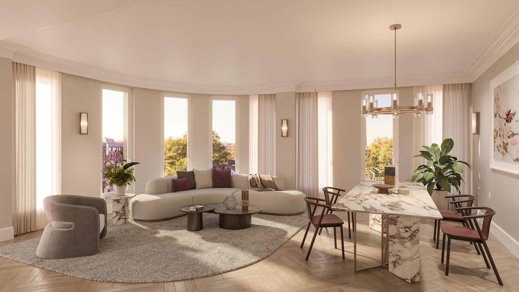 Interiors are as exceptional as they are comfortable. Graceful proportions, soaring ceilings and luxurious finishes are the hallmarks of these distinctive residences. The expansive spaces are framed by floor-to-ceiling triple-paned, superbly energy efficient windows that envelop each home with abundant natural light and captivating views of Forest Hills Gardens.