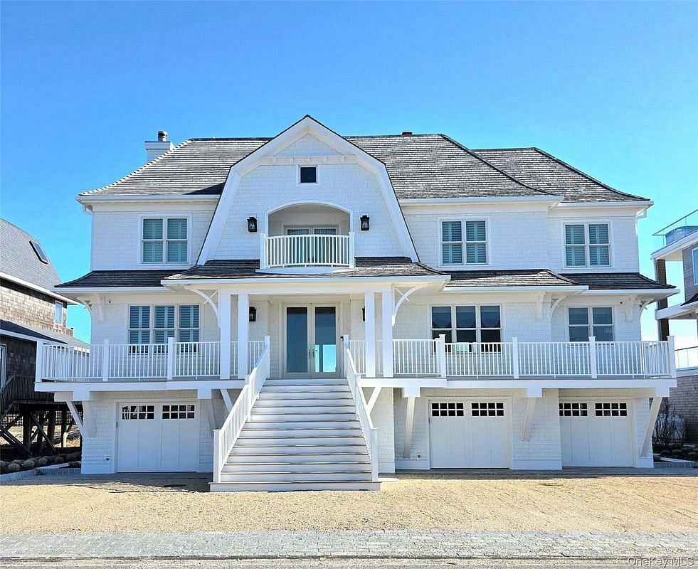 This southern-facing Custom Built Post Modern boasts 80' of ocean frontage with stunning breathtaking panoramic views of the Atlantic Ocean and bay. Newly renovated from the dunes up, this post modern residence encompasses 4,610 SF of living space, 5 bedrooms, 5 full bathrooms, a custom heated infinity edge gunite pool with a waterfall, and more. Located on the south side of Dune Road, this esteemed renown address enjoys a seductive oceanfront location. From your spacious ocean front deck, built for entertaining and heated infinity edge gunite pool with a waterfall, your own private boardwalk takes you and your guests to the wide white sandy ocean beach. Floor-to- second story 18 ft. ceiling windows and elegant lighting illuminate the home's wide, open-concept living spaces. Enjoy indoor/outdoor living with seamless transitions from the great room to the outdoor pool deck with welcoming ocean vistas State-of-the-art kitchen with top-of-line appliances and center island with seating is perfection. The wet bar and bar area with separate seating for intimate conversations is the ultimate entertainment accessory. The inviting dual primary bedrooms each features its own fireplaces with sliding glass doors to private ocean vista decks above the dunes, walk-in closets and spa-like custom full bathrooms. The three ample guest rooms all features en-suite custom bathrooms. High- end integrated smart home Brilliant modern technology system which can control the lighting, security, music, lock doors , arm security and dim the lights from wherever you are. Equipped with a comprehensive whole house power system generator ensuring that your coastal sanctuary remains a bastion of comfort and light regardless of the elements. Renowned shopping and dining on a vibrant Main St. in Westhampton Beach Village are just 4.7 miles away. Experience state-of-the-art modern living on Dune Road. Sunrises and Sunsets over the ocean are yours in this waterfront, newly renovated home available for immediate occupancy.