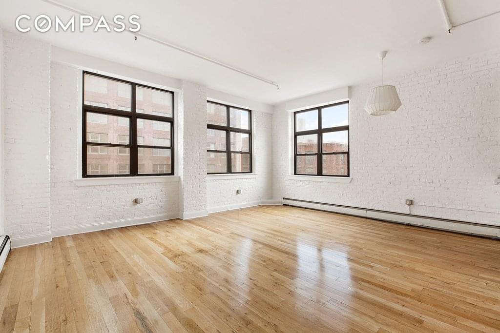 A gracious gallery foyer leads to the open living space, where 10'+ ceilings, exposed brick walls and a coveted corner exposure prevail. Sunlight cascades through oversized windows facing west over cobblestoned Bridge Street and north down to the water. An updated kitchen opens to a well-appointed dining space, combining to create an ideal setting for entertainment.