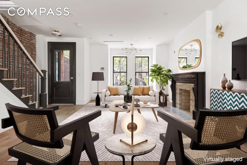 This townhouse is a two-family brownstone that features 5 bedrooms, 4 full bathrooms, 2 powder rooms, a large parlor deck, and an expansive backyard garden. From wide-plank white oak floors to original doors and exposed brick, attention to detail can be found throughout this well-appointed home.