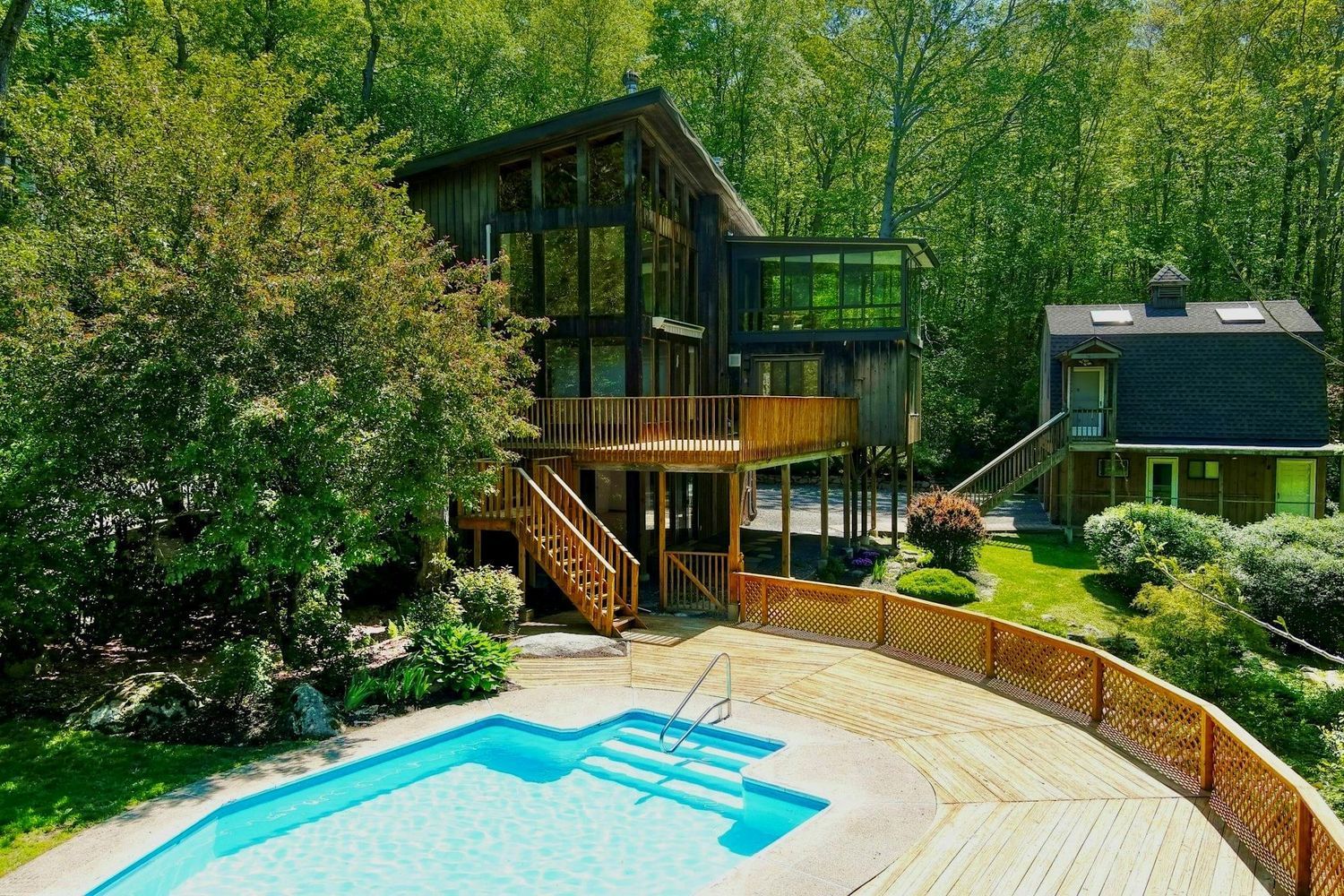 Experience architectural drama and tranquil luxury in this breathtaking contemporary residence, where walls of glass blur the boundary between indoors and out. Perched above the shimmering reservoir at the end of a cul-de-sac, this three-bedroom, three-bathroom home is a bold statement in design, defined by abundant natural light and a seamless connection to nature. The open-concept main living area is anchored by expansive windows that frame sweeping views of the water and sky. Warm wood accents add depth and texture. Each of the three bedrooms offers privacy and style, including a serene primary suite with reservoir views and direct access to the outdoor terrace. Step outside to your personal oasis: a stunning pool and sun deck overlook the water, surrounded by native landscaping and the sounds of nature. Whether enjoying a morning swim or sunset cocktails, the outdoor spaces are equally suited for solitude and celebration. Beyond the main house, a separate garage with an attached studio adds incredible versatility. Ideal as a home office or art studio this flexible space offers boundless potential for creative or practical uses. With its own entrance and natural light, it's perfect for work, wellness, or extended stays. Located in a peaceful enclave with a front-row seat to nature, yet minutes from vibrant dining, shopping, and cultural destinations, this home is a rare blend of privacy, design, and inspiration. Don’t miss the opportunity to own this dramatic, light-filled home where every window paints a picture, and every space is a retreat. Highly Rated Katonah- Lewisboro School District.