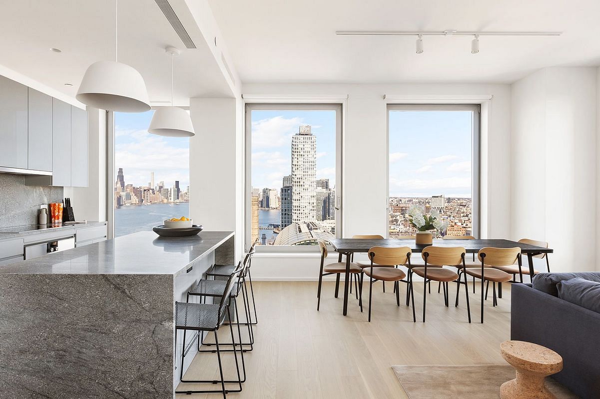 Situated on the 32nd floor of One Domino Square, Residence 32D is a beautifully designed two-bedroom, two-bathroom home with expansive north and east exposures, offering captivating views of the city skyline.