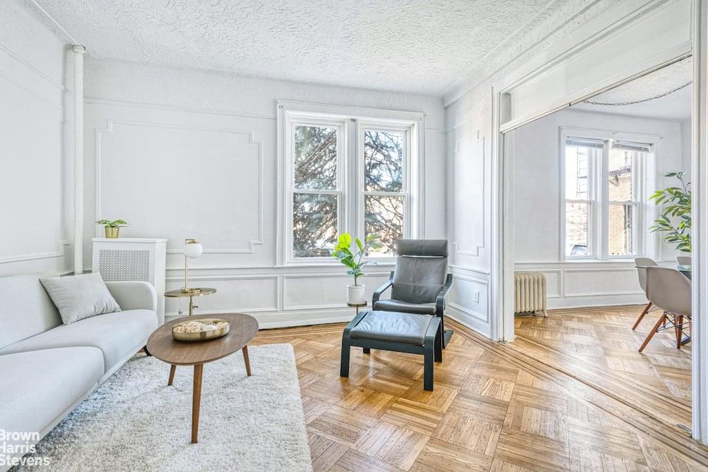 Spacious and Prewar large corner one bedroom with a full sundrenched separate dining room with four picture windows. It has lovely original details including oversized windows, high ceilings, original oak bordered floors, & decorative picture and chair rail moldings. On the first floor above street level, appreciate the welcoming layout with a large gallery foyer and side-by-side living and dining which is great for entertaining! Let's not forget the spacious windowed kitchen and windowed bathroom and -- drumroll-- a washing machine in-unit! Bring your imagination and create your dream home! This charming pet-friendly Bay Ridge boutique cooperative has 12 units, storage and laundry, and a common rear yard.