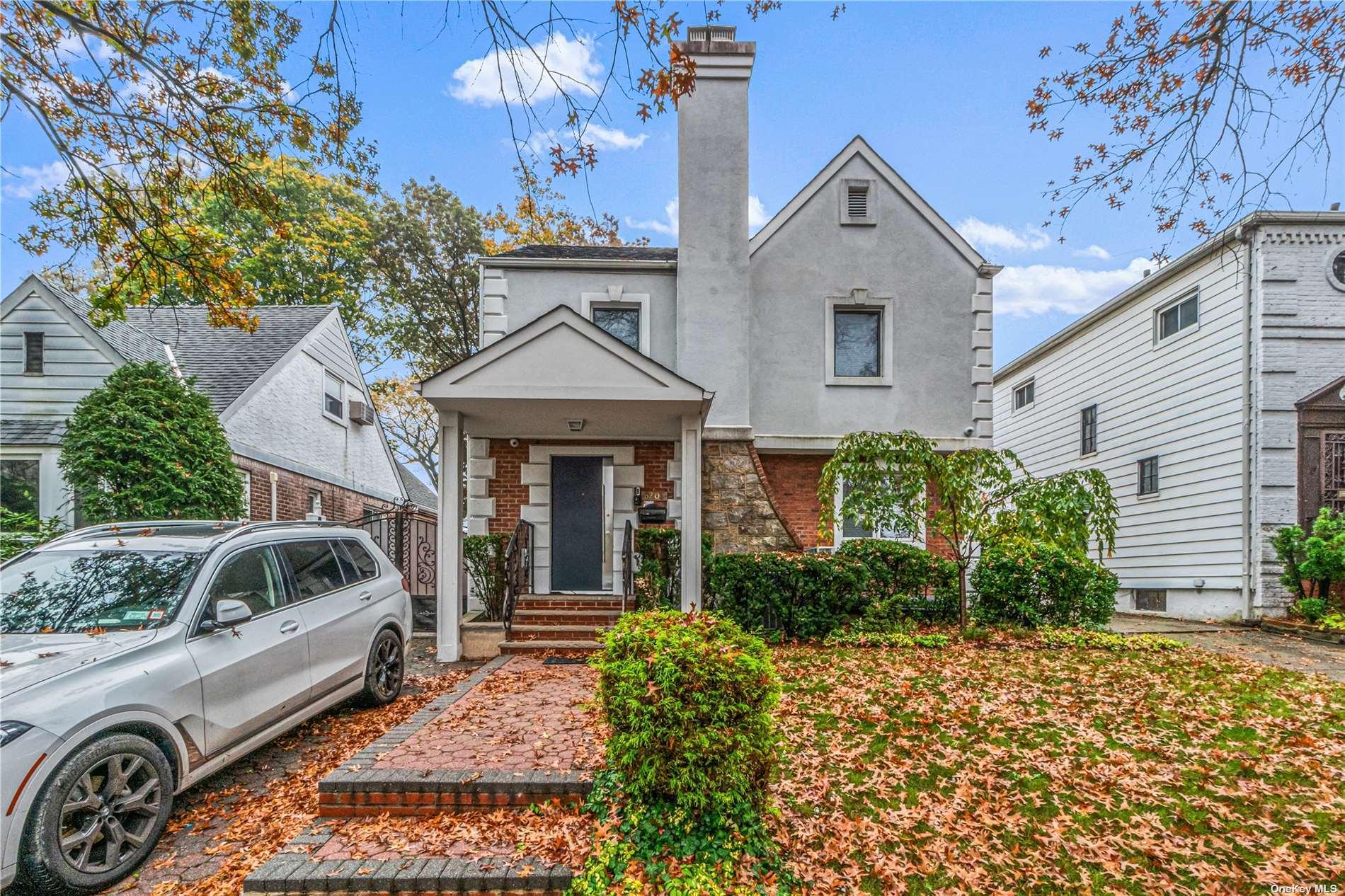 Welcome to this Magnificent and Extended detached brick upscale completely renovated (2021) top-to-bottom colonial house in the heart of Jamaica Estates. This breathtaking house introduces on the first floor: a large foyer, beautiful wood floors, a fireplace, a gorgeous 1/2 bath, a huge living room, an enormous formal dining room, a huge and stunning custom-built eat-in kitchen which includes Quartz ( American) countertops, stainless steel appliances, two sinks, beautiful cabinetry and cathedral ceilings with a stunning skylight. The upstairs introduces 3 large bedrooms with custom-made closets and a beautiful full bathroom. Washer and dryer located on the 2nd Floor. This superb property includes a 1 car detached garage and parking area. The finished lovely basement which has a separate entrance introduces a full bath and a kitchen. This magnificent property has a fence completely around its perimeter, beautifully landscaped gardens, flower beds, and shrubbery and pavers. Full Video alarm system and is near to shopping and transportation.