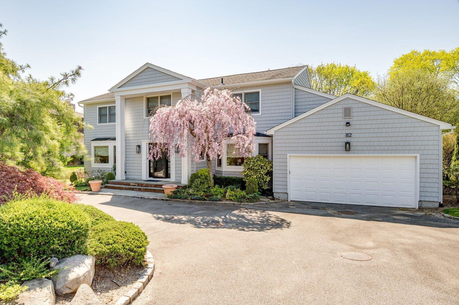 Welcome to 82 Woods Drive in East Hills! Roslyn SD! A circular driveway leads to this spacious Center Hall Colonial on a flat, private, almost 1/2 acre lot. Featuring 5 bedrooms and 3.5 baths, the home offers a roomy and functional layout. The large eat-in kitchen with center island is equipped with a Thermador double oven, Subzero refrigerator and opens to a large family room with fireplace and sliding doors to the patio. A great room and formal dining room offer abundant natural light. The first floor also includes a bedroom, full bath, guest bath, and mudroom with laundry. Upstairs, the primary suite has 2 walk-in closets and updated bathroom. Three additional bedrooms and a full bathroom with tub complete the second floor. The walk-out basement has large play area, work/office options, an abundance of storage, utilities, and sliders to the backyard. Outdoor highlights include an asphalt basketball court, patio with built-in BBQ, and large level grass play area. Additional features: central air, 2 car garage, and oversized driveway. Convenient to schools, shopping, restaurants, train and highways. East Hills Pool and Park included.