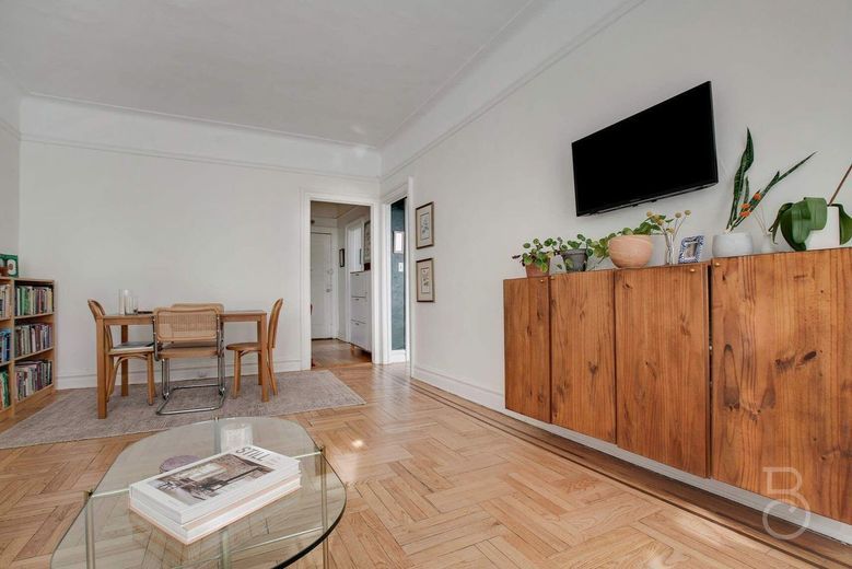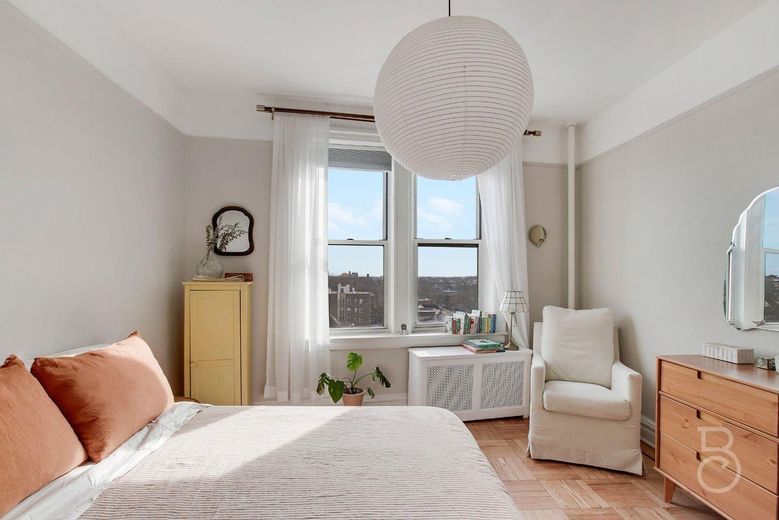Welcome to Castle Court, a charming pre-war residence set within a picturesque, tree-lined community of English and Tudor-style homes. This beautifully renovated one-bedroom seamlessly blends classic pre-war elegance with modern farmhouse sophistication, offering a perfect balance of timeless charm and contemporary style. Elevated by 9-foot ceilings, graceful archways, and stunning oak hardwood floors, this rare gem exudes warmth and character. A welcoming entry foyer leads to a sleek eat-in kitchen, complete with custom white cabinetry, quartz countertops, and stainless steel appliances, while the sun-drenched living room and bedroom, bathed in southern exposure, provide a bright and airy retreat.