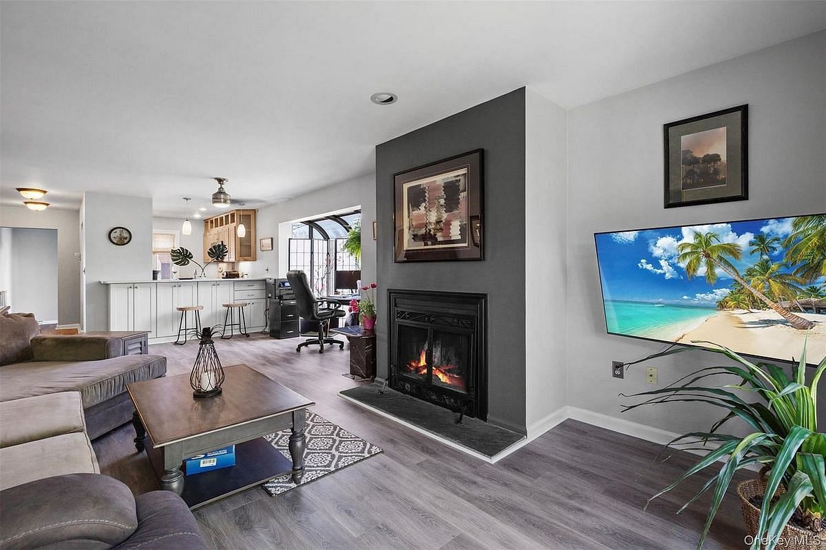 Welcome to your next home - a stylish 2-bedroom condo where modern living meets comfort, and where your four-legged family members are warmly welcomed! Hudson Point is a lovely pet friendly complex overlooking the historic Hudson. Enjoy stunning sunsets in this 2 bedroom, 2 bath end unit with partial seasonal river views. Step inside and discover an open-concept living space filled with natural light. The thoughtfully designed kitchen features quartz counters and custom maple cabinets w/a convenient breakfast bar, ideal for both casual meals and entertaining. This sunny unit includes a floor to ceiling atrium which is divine. The kitchen flows seamlessly into the bright and airy living room, with brand new Pergo floors & a cozy fireplace. The spacious living area flows seamlessly to an oversized balcony, perfect for morning coffee with your pup by your side. Both bedrooms offer generous closet space, with the primary suite featuring an en-suite bathroom and a walk in California closet with access to a large attic for extra storage. The second bedroom works beautifully as a guest room, home office, or dedicated space for your furry friend's bed and toys. Dog owners will appreciate the new durable flooring throughout, nearby walking trails, and the community's pet-friendly policy. What's not to love with all this space, new floors and YES an in-unit washer & dryer for added convenience? Hudson Point's sought-after amenities are just steps away, including a pool, clubhouse, fitness center, and basketball court. Ample parking is available, and the community is conveniently located close to the train station, shopping, and restaurants, offering the perfect blend of suburban tranquility and urban accessibility. Ready for you right now, this beautiful home needs absolutely nothing but your furniture. Nicely updated throughout, this rare pet-friendly riverside property offers instant enjoyment with zero renovation hassle. These exceptional opportunities don't last—schedule your private viewing today before this perfect retreat becomes someone else's new address. Don’t miss out on the opportunity to live in this incredible pet friendly riverside retreat – just move in and enjoy! Very important note: this is not ground floor.. there is 1 flight of interior stairs.