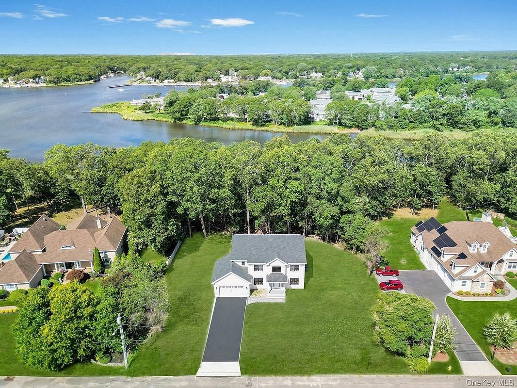 Once in a lifetime opportunity to own New Construction Waterfront. 2,891 Square foot custom Colonial in Windmere Point development. This homes sits towards the back of the cul-de-sac on an incredible 1.02 acre lot with 155.7 feet of waterfront with access of Forge River leading out to Moriches Bay. Custom design Center Hall Colonial with Royal Portsmouth cedar impression shake siding with White Azek exterior trim & partial stone front facade, Prestige double hung Anderson windows, 30 year architectural solar ready roof, garage doors with Genie Wi-Fi garage door opener & covered front porch portico. Awning windows on garage. Grand two-story entry, hardwood floors, recessed lighting, custom molding, 9 foot first floor ceiling, two panel shake interior doors. Chef's kitchen with Stainless steel appliances, Shaker-style cabinetry, 42" upper cabinets. Quartz kitchen countertops (1.25" thickness), Stainless Steel Sink. 36" gas stove, Center Island with additional seating. Just off the kitchen access to Mud Room, Pantry, Powder Room & Garage. Open floor plan to Great Room with 42" Gas Fireplace. Formal dining room & Formal Living Room complete the first floor. The 2nd floor features an Enormous primary suite with walk-in closet, spa-like primary bath with double sink, three additional spacious bedrooms all with 8' closets, hallway bath double sinks. Laundry Room with GE or similar Top-Load Washer/Dryer. Full basement with 8 foot ceilings. Forced hot air Propane gas heat. 2 unit CAC. 50 gallon gas, hot water heater. 2-car garage. Conveniently located to the Hamptons, North Fork and just 60 minutes to Midtown Manhattan. Home is being featured by award winning Kelly Development, with over 30 years of diversified Real Estate industry experience, and has been involved in the development of over 2,000 homes on Long Island. White-glove service includes fully turnkey construction, pre-move-in cleaning with quality assurance with Home Warranty and new home orientation pre-closing.