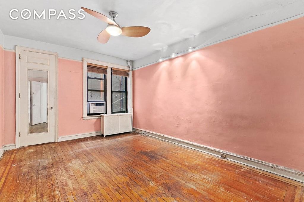 This enormous one-bedroom unit with a large formal dining room is converted into a two-bedroom, one-bath apartment in the beautiful sought-after Westminster Hall Coop building in Crown Heights.