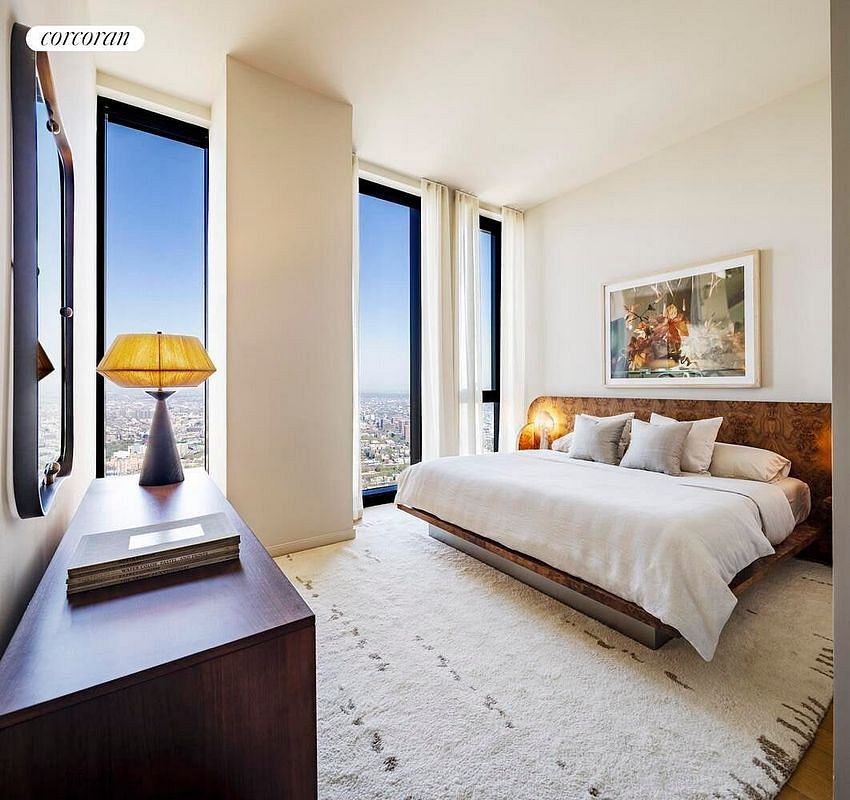 Designed by award-winning SHoP Architects, residence 55A is a generously proportioned 1,266 square foot north-west facing two-bedroom, two and a half bathroom home with ceiling heights up to 11 feet. Expansive floor to ceiling windows let in an abundance of natural light, framing dynamic views of the Brooklyn Bridge, Manhattan skyline and New York Harbor.