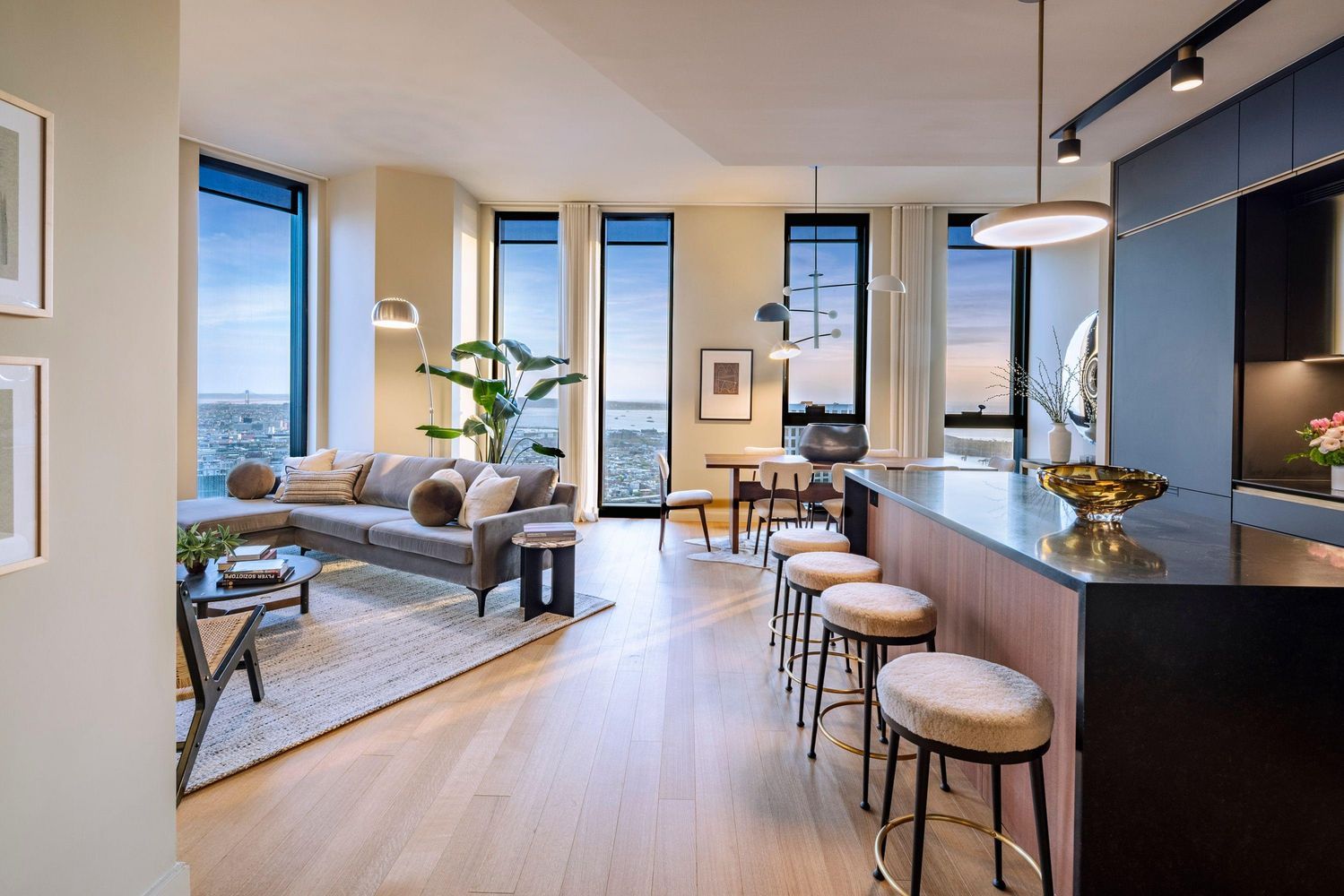 Designed by award-winning SHoP Architects, residence 88PHN is generously proportioned 2,432 SF north-east-west-facing four-bedroom, four-and-a-half-bathroom half-floor home with ceiling heights up to 11 feet. Expansive floor to ceiling windows let in an abundance of natural light, framing panoramic views of the Brooklyn and Williamsburg bridges, Manhattan skyline, East River and New York Harbor.