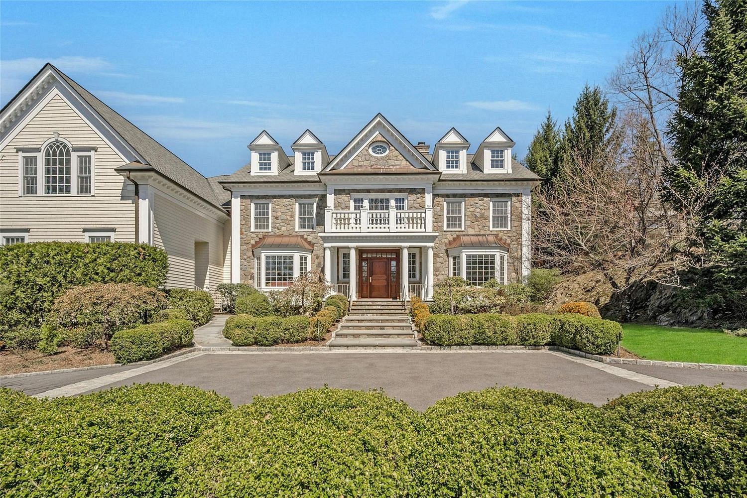 Welcome to 85 Woodlands Road, a splendid residence in the prestigious Sterling Ridge enclave of Harrison. Blending timeless design with luxurious livability, this exceptional property is a showcase of elegance, comfort, and craftsmanship. A circular driveway framed by mature, manicured landscaping sets a gracious tone from the moment you arrive. Step through the grand double-height foyer and into a home designed to impress, with soaring high ceilings and richly detailed finishes throughout—coffered ceilings, custom wainscoting, and tailored built-ins. The main floor offers a seamless balance of formal and informal spaces. Enjoy a gracious formal living room with a wood-burning fireplace, a refined formal dining room ideal for hosting, and a warm, inviting den that also features a wood-burning fireplace—perfect for cozy evenings or relaxed gatherings. The home office is outfitted with custom cabinetry, perfectly suited for today’s work-from-home lifestyle. At the heart of the home is a chef’s eat-in kitchen, complete with two dishwashers, abundant prep space, and direct access to the butler’s pantry with wine storage. Three exits open to the rear stone patio, overlooking a spectacular private backyard with a chipping green for the avid golfer. Tucked thoughtfully on this level is a private first-floor bedroom with an en-suite bath, providing an ideal retreat for guests, in-laws, or au pair accommodations. A mudroom and laundry room complete the main floor, offering practical luxury for everyday living. Upstairs, the primary suite offers a tranquil escape featuring its own wood-burning fireplace and a spa-inspired bath with a round soaking tub, walk-in shower, dressing area, and dual walk-in closets. All additional bedrooms are en suite, ensuring comfort and privacy for every resident. With wood-burning fireplaces in the formal living room, den, and primary bedroom, high ceilings throughout, and a floorplan that supports both grand entertaining and private retreat, this home truly delivers on every level. Located just minutes from the vibrant towns of Rye and Harrison, 85 Woodlands Road is more than a home—it’s a statement of refined living in Westchester’s most desirable setting.