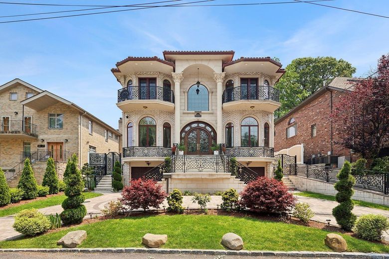 Indulge in the ultimate luxury living experience with this stunning 5-bedroom, 5.5-bathroom estate in the exclusive neighborhood of Holliswood. Situated on a spacious 63x132 lot, this home captivates with its grand facade, featuring ornate wrought-iron balconies, stately columns, and a welcoming arched entrance. Inside, you are greeted by an elegant foyer with soaring ceilings and a sweeping staircase that sets the tone for the home's refined ambiance. The expansive living areas flow effortlessly from one room to the next, showcasing beautiful hardwood floors, intricate moldings, and designer lighting throughout. The heart of the home is the custom-designed kitchen, a culinary masterpiece equipped with top-of-the-line appliances, generous counter space, and a large island perfect for entertaining and casual dining. Adjacent to the kitchen, the formal dining room offers a sophisticated space for hosting dinner parties and gatherings. The family room, with its cozy fireplace and oversized windows, is ideal for relaxation, while a separate formal living room provides a gracious space for more intimate occasions. Each of the five generously sized bedrooms is a private sanctuary, boasting its own en-suite bathroom with luxurious fixtures, marble finishes, and custom vanities. Additional features include a fully finished basement that is used as an entertaining room, with a private theater. Outside, enjoy a serene backyard retreat complete with a shimmering pool and hot tub. The expansive driveway offers ample parking for guests. This Holliswood estate offers the perfect blend of sophistication and comfort, making it an exceptional place to call home.
