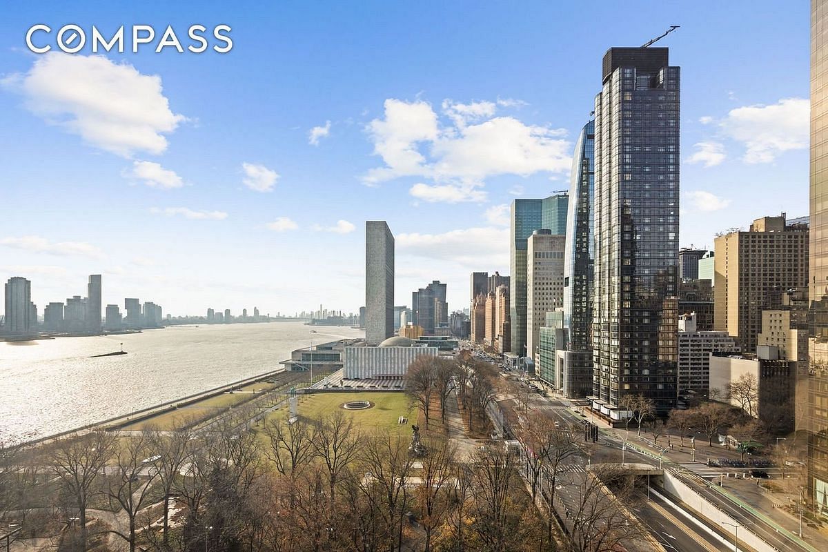 Residence 16G at 860 United Nations Plaza is a masterfully renovated 2-bedroom, 2-bathroom sanctuary floating above the East River with magnificent Southern exposure and cinematic vistas of the UN Headquarters, riverfront, and downtown skyline.