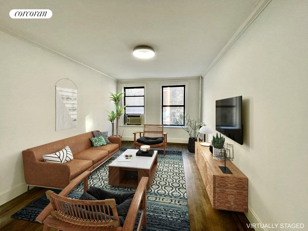 Nicely renovated, one bedroom co-op apartment. The large windowed kitchen features stainless-steel French door refrigerator, gas range, Bosch dishwasher and microwave, subway tile backsplash, white quartz counter-tops, deep stainless-steel sink, gray cabinet bottoms and white cabinet tops. There are dark walnut hardwood floors, nine-foot ceilings, two generous closets and a spacious foyer. The black and white tiled bathroom has an original newly glazed deep soaking tub. Located on the corner of Cabrini Boulevard and 181st Street, West Gate House Co-op is a pet-friendly building that has a live-in super, porter, two garden courtyards, two laundry rooms, storage lockers, bike storage, attractive lobbies, and the Butterfly MX Intercom system to securely monitor all guests and deliveries. Just minutes away are the A and 1 train stations, M4, M5, M98, Bx7 and M100 buses, and the George Washington Bridge Terminal with bus service to New Jersey. Easy commute to New York Presbyterian Hospital, City College, and Columbia University. The welcoming neighborhood has all the local services you need, including fitness centers, grocers, hardware stores, restaurants, Cabrini Wine Shop, Citi Bike, and more. Enjoy outdoor time in nearby Fort Tryon Park, and visit the Cloisters and Heather Garden, or head down to the Hudson River to Fort Washington Park where you will find the Little Red Light House, tennis courts, soccer, and baseball fields, running trails, and a bike path that is traffic-free all the way down the west side of Manhattan to Battery Park. Come make this Manhattan neighborhood your new home.