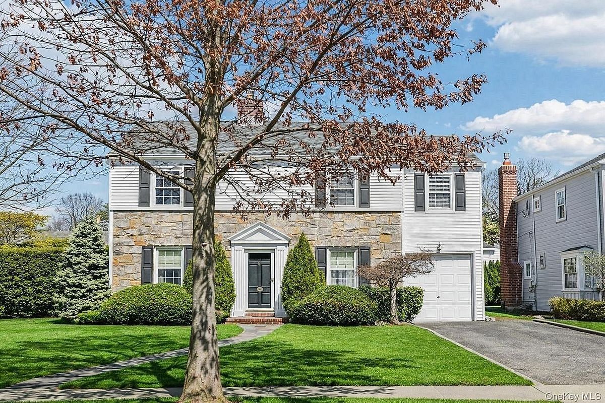 Welcome to this beautifully maintained Colonial in the sought-after Mott section of Garden City, where timeless charm meets everyday comfort. A gracious layout welcomes you with a sun-filled living room featuring a classic fireplace, a formal dining room perfect for entertaining, and an updated kitchen with granite countertops that opens to a bright dining area with skylights and backyard views. The home also offers a spacious family room with vaulted ceilings, a versatile home office, three well-appointed bedrooms, 1.5 baths including a convenient first-floor powder room, and hardwood floors throughout. A full basement provides excellent storage and additional living potential, all ideally located near town, schools, parks, and the LIRR.