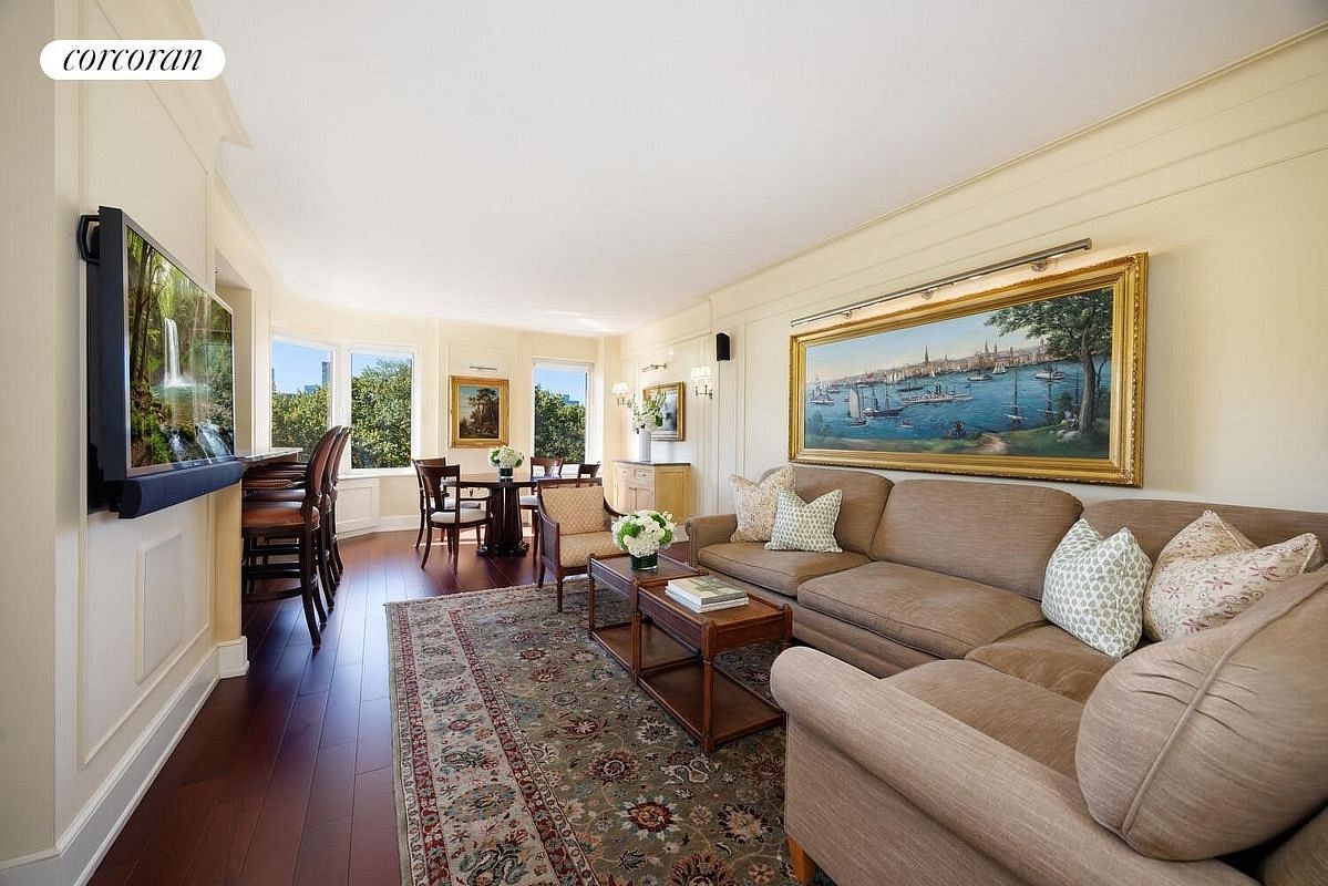 The grand living and dining room is perfectly positioned to showcase the endless expanse of Central Park-an extraordinary backdrop for both entertaining and everyday living. The open Christopher Peacock kitchen is beautifully designed with custom cabinetry and top-of-the-line appliances from Sub-Zero, Viking, and Miele. A built-in desk provides a convenient workspace, while an elegant powder room, spacious coat closet, and a large storage area beneath the staircase complete this level.