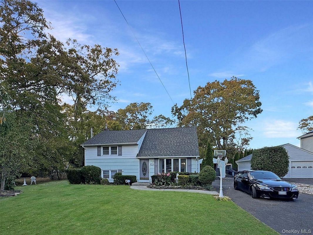 ATTENTION ATTENTION ATTENTION! LOT SIZE MATTERS! A MARVELOUS LOCATION AND PICTURESQUE RESIDENTIAL COMMUNITY! A spit-level home boasting 4 bedrooms and 2 full baths, with an accessory apartment for producing additional income or for extended family. Other features include natural gas heating and cooking, central air, an electric fire place, an outside jacuzzi, an enclosed great sized patio, a detached garage and a driveway that can park up to five cars for gatherings and extended family. Not to mention the half an acre lot complete with green grass, blooming trees and enough space for entertaining all year long or for home expansions and then more! 5 minute drive to several LIRR stations, shops, restaurants parks and more, yet still tucked away in the most picturesque residential community with great curb appeal! ADU (additional dwelling unit) pre-approvals welcome!