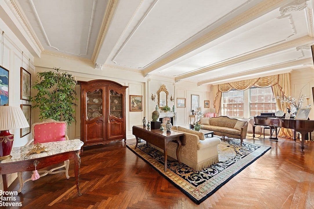 Grand in scale and full of pre-war elegance and charm, this sprawling nine-room, three-and-a-half-bath residence can accommodate sophisticated, large-scale entertaining as well as quiet refinement and comfort for everyday living. Apartment 12B is perched high above tree-lined 78th Street just off Park Avenue, with several rooms enjoying southern exposures with abundant sunlight and open city views.