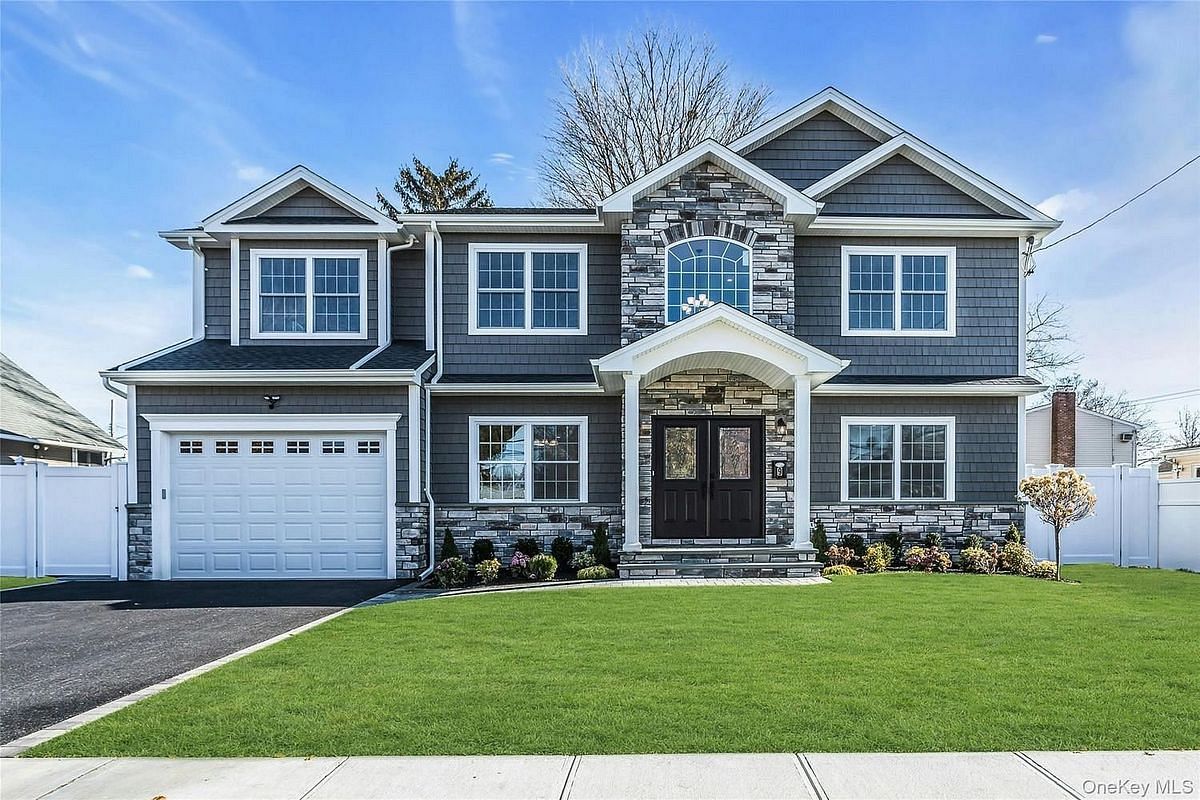Brand New Construction located in the heart of Hicksville, near shopping, dining, transportation and schools. True Center Hall Colonial with 5 spacious bedrooms, 4.5 baths and 1.5 car garage. Oversized guest bedroom and full bath located on the first floor make an ideal living space or bedroom on the first floor. Open concept layout with a gourmet chef's kitchen features high-end stainless steel appliances, double cabinetry to the ceiling and an oversized center island. Sun drenched living room, coffered ceiling in the dining room and elegant millwork throughout the entire house. Junior suite with full bath located on 2nd floor. Primary bedroom with tray ceiling showcases a grand walk-in closet and spa-like primary bathroom. Unfinished full basement with separate outside entrance offers endless possibilities for customization. Fully white vinyl fenced property with in-ground sprinklers and backyard patio perfect for entertaining.