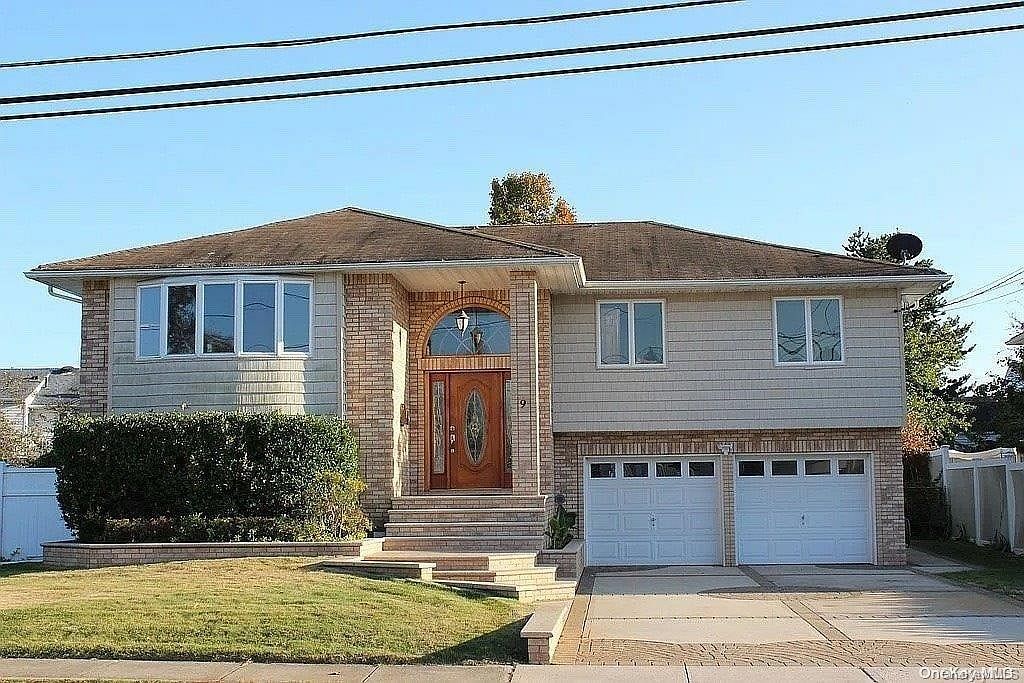 This newly renovated and freshly painted expanded High Ranch is in pristine move-in condition! Located in Flood Zone "X," which means no flood insurance is required by FEMA. The exterior features a classic brick façade, complemented by a custom driveway and walkway paved with granite, with stoops at both the front and back entrances. Inside, the main level boasts a spacious living room and formal dining room. The brand-new eat-in kitchen is outfitted with modern SS appliances. The top floor also includes three well-sized bedrooms and two full bathrooms. The primary bedroom has a newly renovated bathroom. The lower level provides a family room, along with an additional bedroom and a convenient newly renovated half bath. The home is finished with beautiful hardwood floors throughout, while the den and lower-level bedroom are newly carpeted. Additional features include a two-car garage, Andersen windows, solid wood interior doors, and central air conditioning for year-round comfort. The home is located near Philip Healey beach and Anchor park. This home offers the perfect combination of modern updates and classic charm, making it ready for you to move in and enjoy.