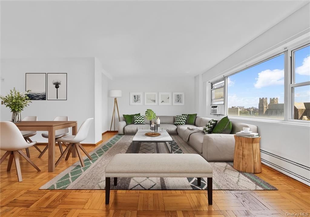 This eight floor 2-bedroom apartment is nestled in the Gated Fordham Hill Oval co-op community and provides an exceptional opportunity for those seeking the best of city living and value such as the SELLER WILL PAY 6 MONTHS MAINTENANCE AT CLOSING. The generously sized living room flows to the dining area and is bathed in natural sunlight from the picturesque window. The 2 large bedrooms are equipped with ample closet space, and the apartment offers hardwood floors throughout. The kitchen features plenty of cabinets and new appliances. Additional amenities include on-site laundry facilities, 24-hour security, a children's playground, community rooms and outdoor garden seating. The monthly maintenance includes heat, gas, electric, hot water and basic cable. This complex is conveniently located near shops, dining, public transportation, major highways and a parking garage adjacent to the complex provides a discount to unit owners. With everything offered, this is a must see property.