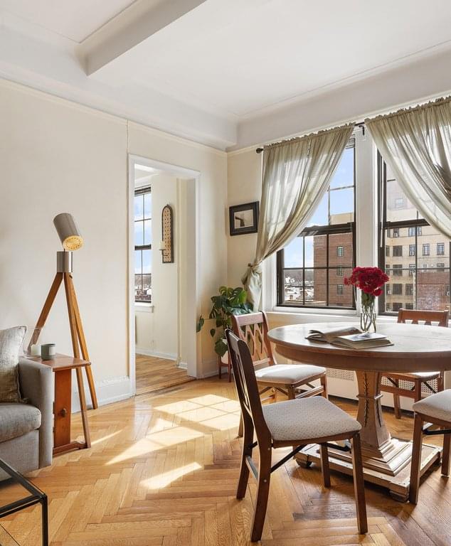 Welcome to 9E at The President: a massive one bed, one bath, south-facing unit with unobstructed views for miles toward the Prospect Park's treetops and brownstone Brooklyn. This quintessential Park Slope home offers a sun drenched vibrance with windows in every room, hardwood herringbone floors and charming moldings. The advantageous layout keeps the eat-in kitchen separate from the living room, allowing a spacious feel to entertain guests or to spread out and relax. The extra-large bedroom can accommodate a king-size bed, in-home office, and grand dresser, with plenty of space to spare. The space feels even larger with three separate closets and a recently refinished soaking bath in the bathroom.