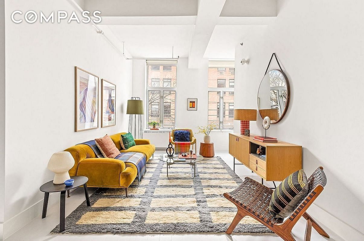 This loft-style, oversized 1 bedroom apartment features massive windows and soaring ceilings. White painted hardwood floors, lighting from DWR and Schoolhouse, and modern finishes add a sleek quality to this home. At over 800 square feet, there is plenty of room for living and dining with no compromises. The spacious U-shaped kitchen features abundant storage, Fireclay backsplash tile, a brand-new Samsung range, Jenn Air Refrigerator, dishwasher and microwave. The recently renovated bathroom brings a cool vibe with it's dark walls, chrome finishes and soaking tub. There is substantial closet space throughout the apartment. Washer and Dryer in unit. This pet-friendly, professionally managed condo features a part time super, a roof deck with views of Manhattan and a bike and package room. 91 Grand Ave, aka Clinton Lofts, is a 30 unit elevator building located just off Myrtle Ave in vibrant Clinton Hill. With cafes, restaurants, and stores all within easy reach, this apartment is well located for easy living, not to mention Fort Greene park and Pratt's sculpture garden for beautiful outdoor options.