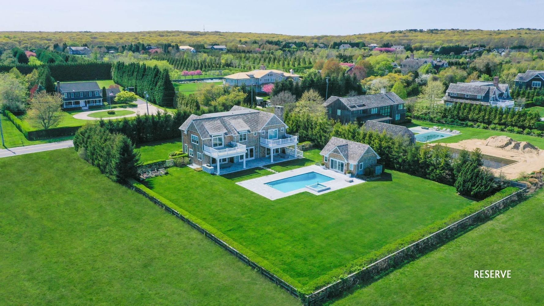 Overlooking more than 100 acres of preserved farm field, find forever open views from this immaculate, stylish home built by a premier Hamptons builder, Farrell Building Company. Upon arriving through the gated entry, the property provides ample guest parking and invites you to the two-story foyer with custom millwork, and a first level with gracious areas for living, relaxing and dining. This exceptional house has an open floor plan bordered by a rear wall of sliding glass doors highlighting a huge backyard and sweeping vistas. Upstairs, find five generous en-suite bedrooms including a huge primary with private deck and sunrise views, walk-in closets, and double vanity bath with shower and bathtub. The lower level offers finished recreational space as well as one additional bedroom and bath. Outdoors, the covered porch with outdoor BBQ/kitchen leads to the gorgeous saltwater pool and spa, pool area with stone patio and pool house with full bath and outdoor shower. The home and landscaping (mature trees, beautiful flowers, planting garden and privets) have been meticulously maintained. There is also a fully approved variance for a tennis court.